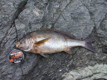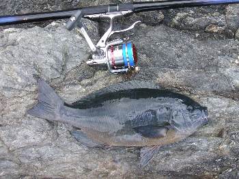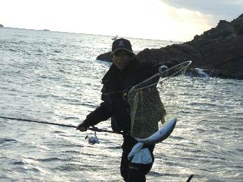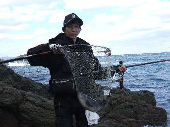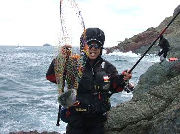 今回は、釣研FG大分県支部のWFG予選を兼ねた釣り大会で、大浜副会長、安藤さんと 田野の3人で、鶴見・大島へと行ってきました。 当日は、季節風が吹き荒れている上に釣り客も多く、風裏となる磯は全てふさがり、 3人で小間島の中への上礁となりました。 強風でコンディションが悪い状況の中での竿出しとなり、クロは3人で4枚と少し 寂しい釣果でしたが、イサキにヤズ、そしてイシダイとお土産に嬉しい魚が釣れて、 シーズン初期の鶴見・大島での磯釣りを楽しむことができました。