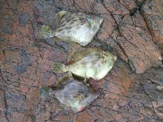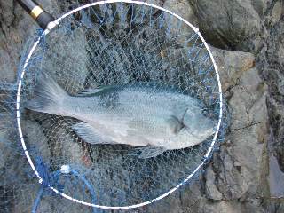 この冬一番の寒気の影響で気温もグッと下がり、寒グロシーズンも本番を迎えた中、 季節風を考慮して、風裏となる大島のダンの内エリアの長バエの地で竿を出しました。 当日は、全般的に魚の活性が低い状況で、クロのアタリも朝マズメのみでしたが、 44cmを筆頭に4枚の釣果を得る事ができました。 また、クロのアタリが遠のいてからも、良型のイサキやカワハギが竿を曲げ、お土産 も確保することができました。 少し奥まった磯でも良型クロのアタリがでるようになり、いよいよ寒グロシーズン本番 となりました。