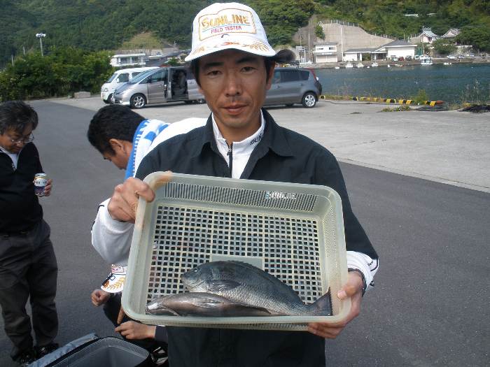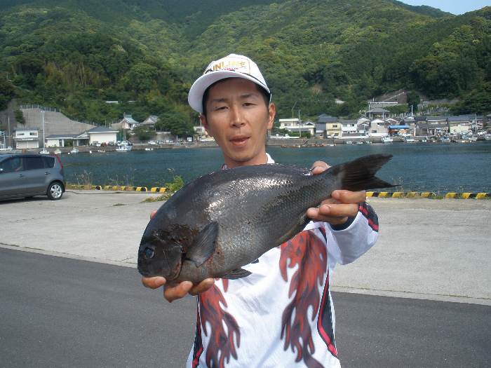 活性が低く中〜小型主体の中、米水津で竿を出した池田文昭さんが、45cm級の
