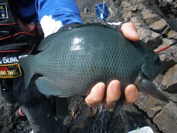 梅雨入り後も好天が続き、その合間に強い雨が降るパターンが続いています。 そして、梅雨グレを狙って鶴見・大島へ。大島東側の権現へと上礁。 朝マズメの期待の上げ潮はコッパオナガのみでしたが、下げ潮に変わってから、 手の平〜足の裏サイズ主体の中から、徳丸会員が44cmのクチブトを筆頭に、 35cm級交じりで3枚の釣果を引きずり出しました! 一方、田野会員は、他魚のオンパレード・・・。 全般的にグレの活性はイマイチですが、狙い方次第で良型が期待できます。