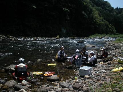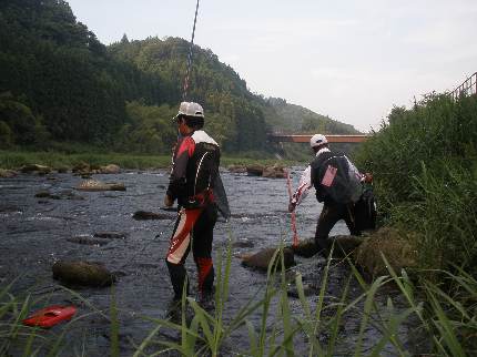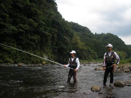 今回は、24日に宇目のキャンプ場で懇親会を行い、翌日25日に奥嶽川でアユ釣り大会を開催しました。