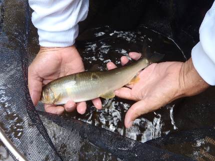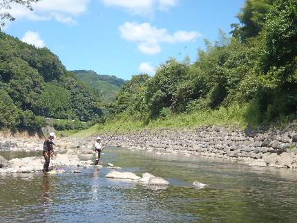 お盆が過ぎて、ようやく朝晩が涼しく感じるようになってきました。 今回は、後藤会長他5名で津江川へアユ釣行。 25cmオーバーの良型を狙っての釣行でしたが、当日の状況が非常に悪く、 寂しい釣果に終わってしまいました・・・。 この状況の中、鬼木顧問は29cmの大型をキープ!さすがですね。 また、吉良さんも27cmオーバーの良型をキッチリと確保していました。 お昼はバーベキューをして、楽しい一日でした。