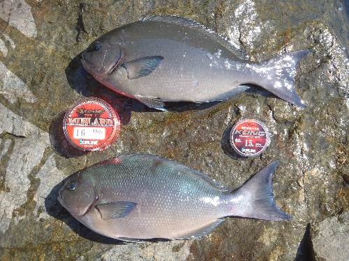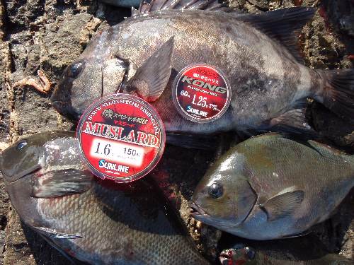 の中、良型のクチブトやオナガ、そしてイシダイの引きを堪能し、道糸とハリスの操作性や強度の実証