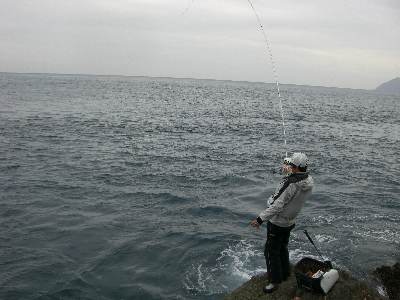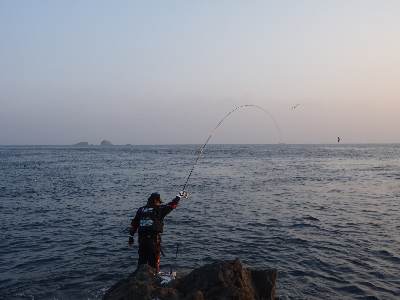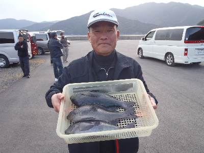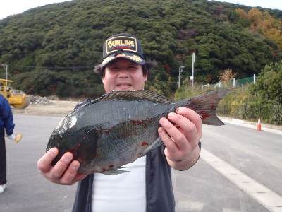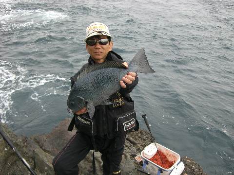 米水津で竿出しした本田さん。しっかりと良型のクチブトを釣り上げクロの部3位です