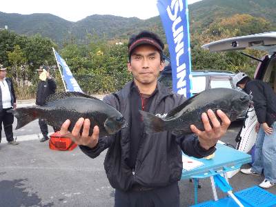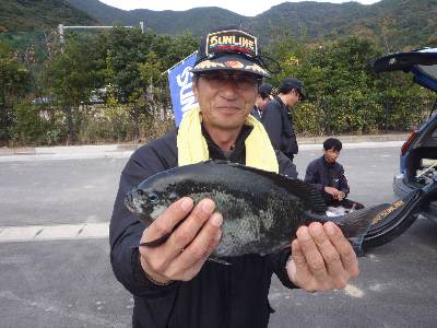 SSCの大会にしては珍しく、参加者の半数が良型クロ交じりの釣果でクロの部に検量。