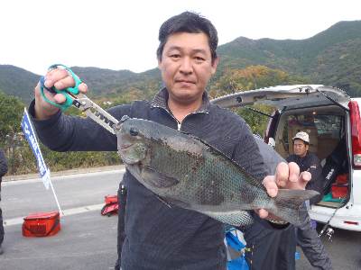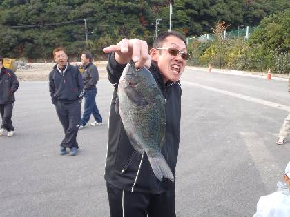 ビシャゴハナレで良型グロを爆釣し見事クロの部優勝の徳丸さん