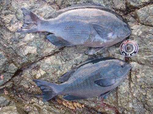 新年あけましておめでとうございます。今年も宜しくお願いします。 今シーズンの大分県南の磯は、コンスタントにグレの釣果が上がっている様子。 そこで、1月9日に鶴見・大島へ釣行しました。 全般的に30〜35cm級のグレの数釣りが楽しめて、磯や潮の状況に応じて 40cmオーバーの良型グレが交じるようです。 この調子で冬季釣り大会まで釣れ続いて欲しいものです。