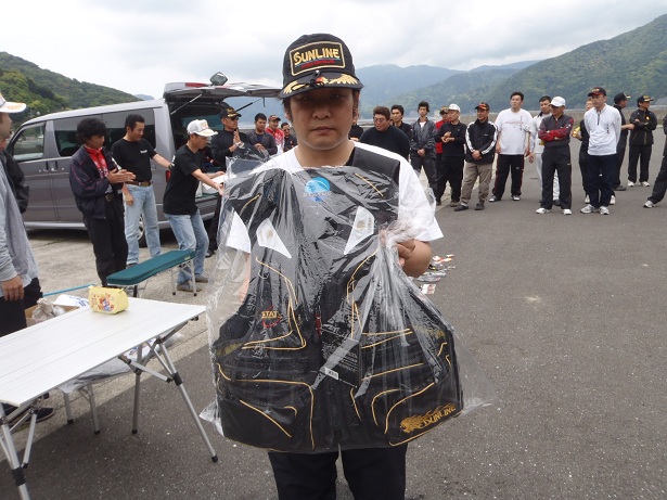 10周年記念賞として、クロの部10位の田原さんへサンラインのフィッシングバッグが当たりました!