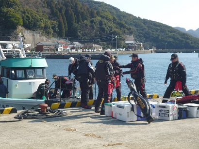 夜明け前の寒さ厳しい中、30名の参加者は、午前5時に出船し各磯へ上礁。