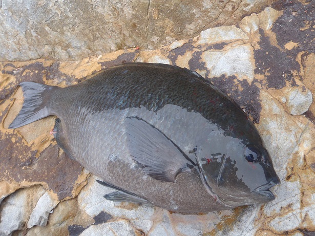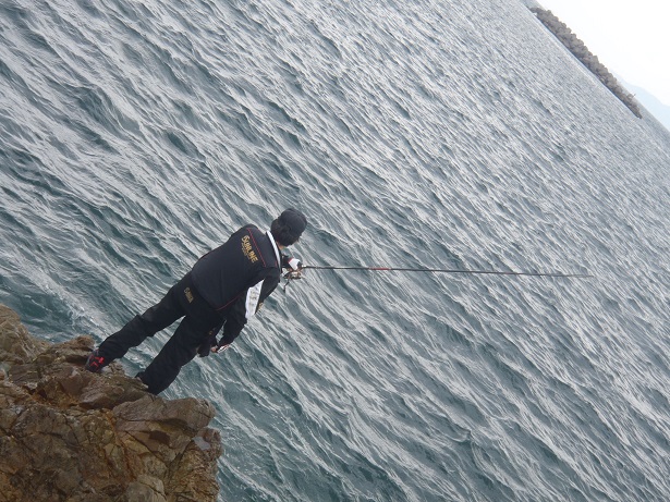 当日は南寄りの風が吹き、そのウネリにより沖磯は荒れており、湾内での竿出しとなりました。