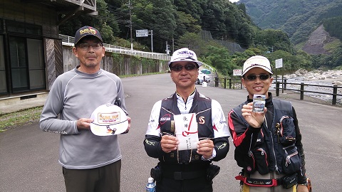ここ最近は、朝・晩過ごしやすくなってきましたが、会員の皆様はいかがお過ごしでしょうか? 9月も中旬となり、アユ釣りシーズンも終盤を迎えてきました。 さて、毎年恒例のSSCアユ釣り懇親大会ですが、前回7月下旬に全員撃沈という快挙(?)を 成し遂げ、平成26年9月14日にそのリベンジに一ツ瀬川へ行ってきました。 透明度の高い澄み渡った河川でのアユ釣りは、何とも言えない爽快感を覚えます。 釣果の方は、シーズン終盤と言うこともあり、少し寂しい状況ではありましたが、 一ツ瀬川のアユの引きを堪能し、参加会員と楽しい一日を過ごすことができました。 これでリベンジ成功?かな・・・ 大分からは片道4時間の長旅となりましたが、参加会員の皆様、大変お疲れ様でした! なお、大会結果は以下のとおりです。 ☆ ☆ 大 会 結 果 ☆ ☆ アユ1尾の長寸 優勝 深田 昌司 26cm 2位 一ノ宮 泉 24cm 3位 田野 貴幸 22cm