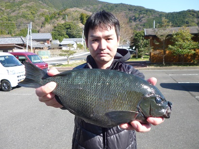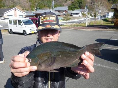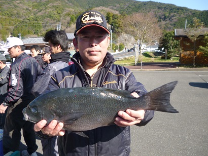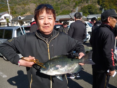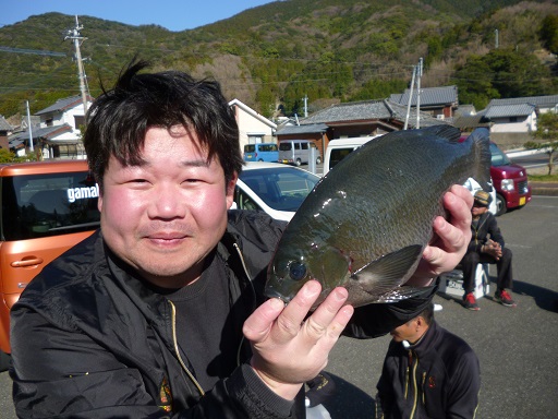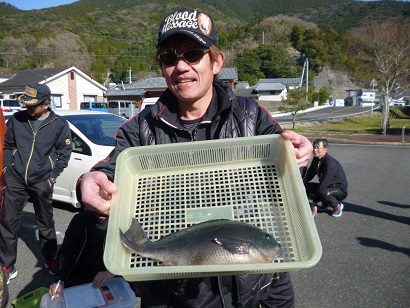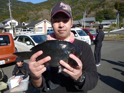 狙い通りの良型チヌを仕留めてチヌの部優勝の家入さん