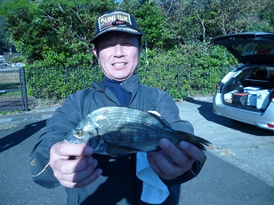 そして、チヌ釣りのエキスパートである副さんは、米水津の波止で狙い通りチヌを喰わせて
