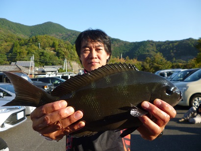 エサ盗りを上手に交わして、良型クロを手中にし、クロの部1位の薮田義人さん