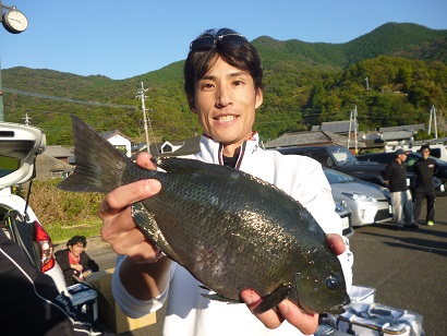 全般的に中型サイズが主体の中、薮田義人さんは、米水津の「サザエハナレ」でキロオーバーのクロを釣ってクロの部1位。