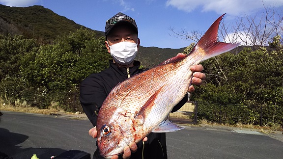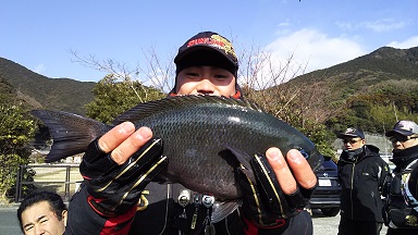 2キロオーバーのマダイを釣って他魚の部優勝の平井祐一さん