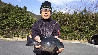 貴重なチヌの釣果を上げてチヌの部優勝の深田昌司さん