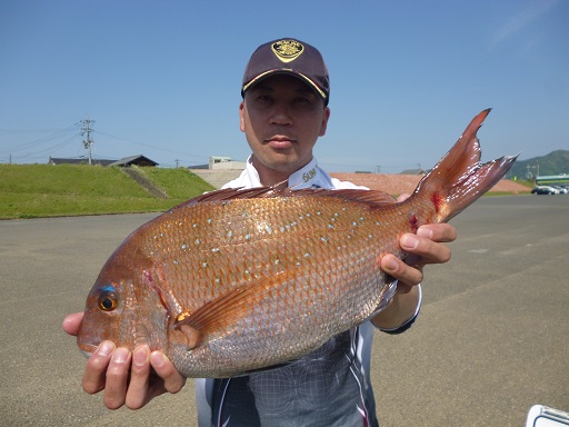 見事に狙い通りの2,200gの綺麗なマダイを釣って他魚の部優勝!