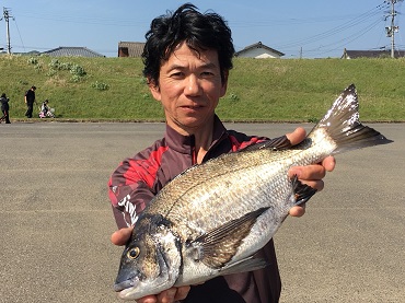 朝マズメの上げ潮でのチャンスを逃さずに、見事良型チヌを釣り上げています!