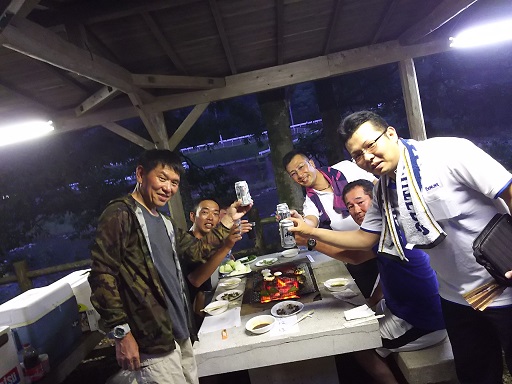 双子キャンプ村のコテージに宿泊し、夜はBBQでの懇親会を行いました。