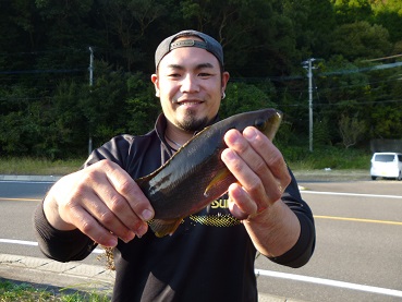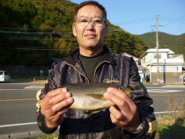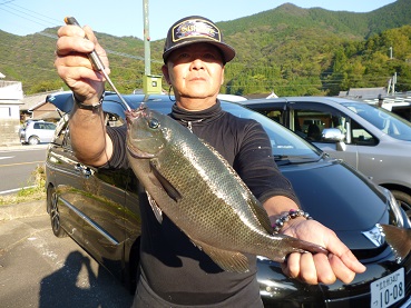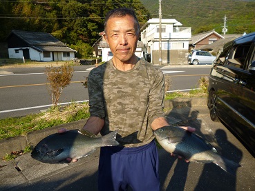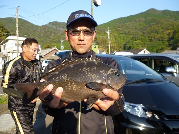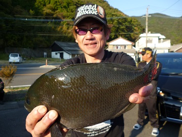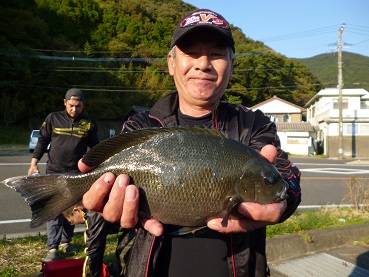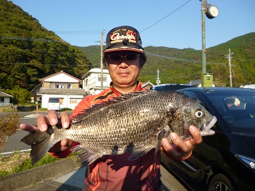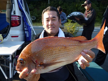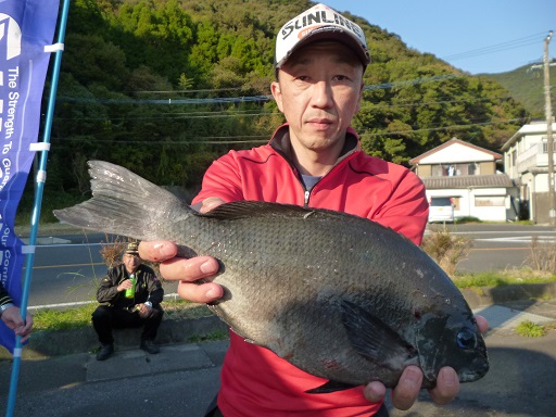 狙い通りに2キロオーバーのチヌを釣り上げてチヌの部1位の阿部貴さん