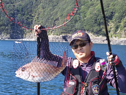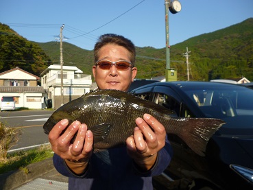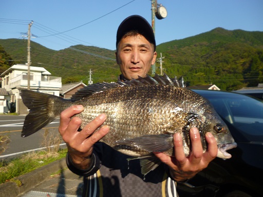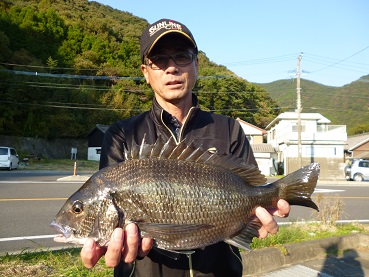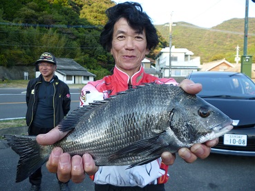 米水津の沖磯で良型イシダイを仕留め、他魚の部1位の平井祐一さん