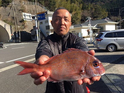 今大会唯一の他魚の部の検量となった貴重なマダイを釣って他魚の部優勝の足立和美さん