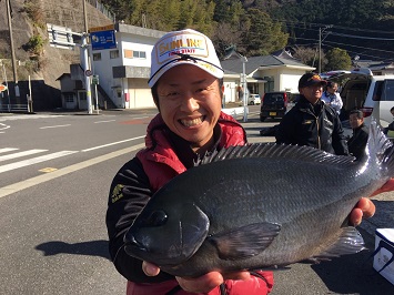 朝イチのワンチャンスを確実に捉えて、1.57sのクロを釣り上げてクロの部優勝の阿部貴さん