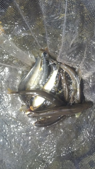 翌日の親睦会用のオトリ確保で竿出しを試みますが、一ツ瀬川がまさかの増水&濁りにより断念。