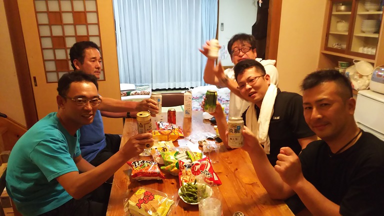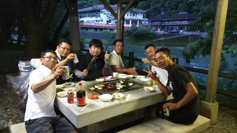 双子キャンプ村のコテージに宿泊し、夜はBBQでの懇親会を行いました。