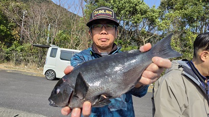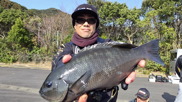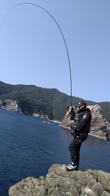 半島地方寄りの磯で、数少ないチャンスをものにし、良型グレを確保したクロの部優勝の那賀さん