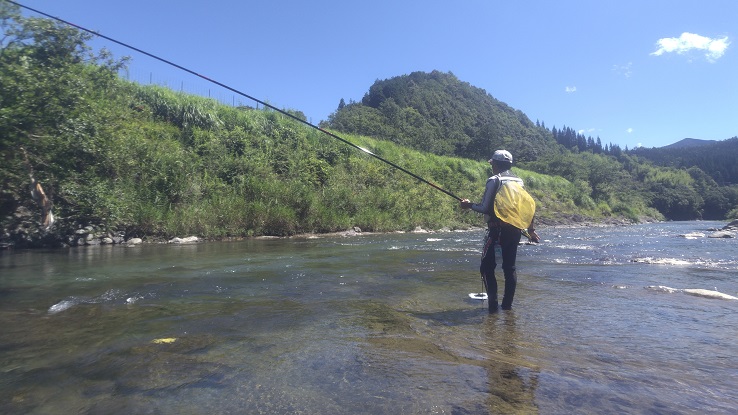 水温が高く土用隠れと言うこともあり、アユが潜んでいそうなポイントを探りながら数を重ねていくパターンです。