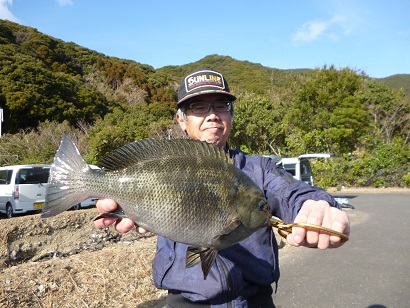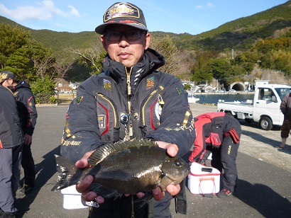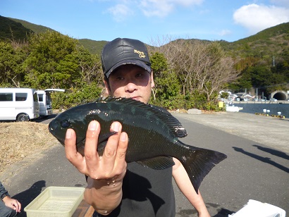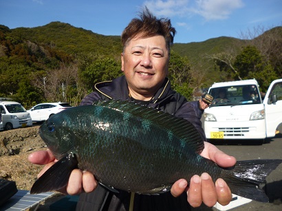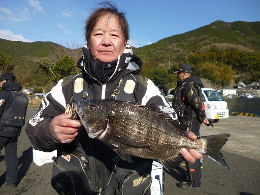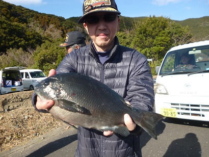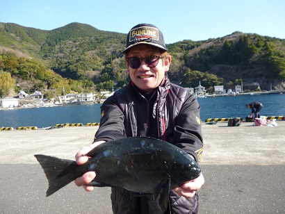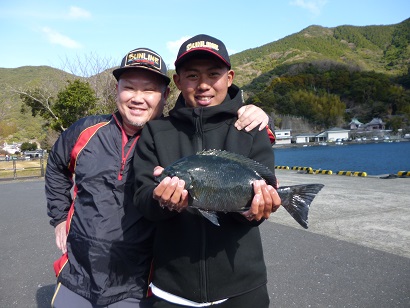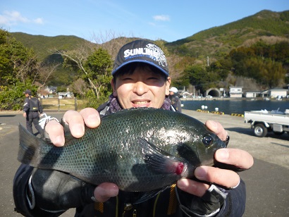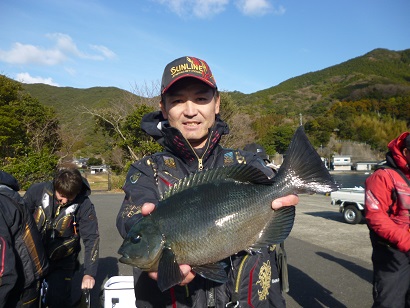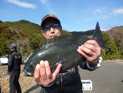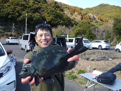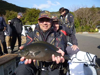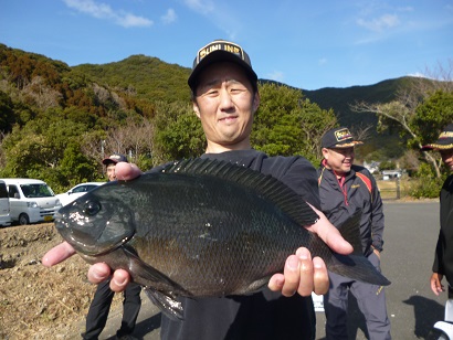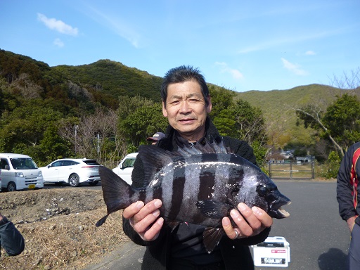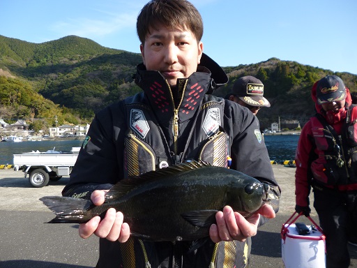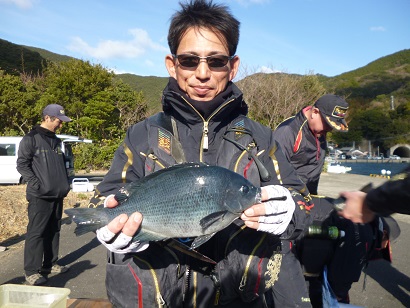 厳しい状況の中、良型のイシダイを釣り上げて他魚の部優勝!