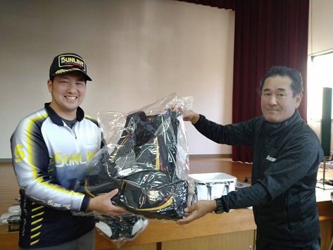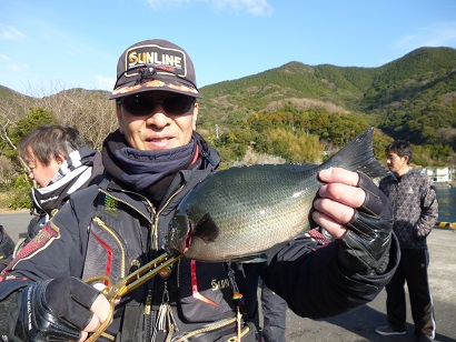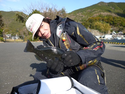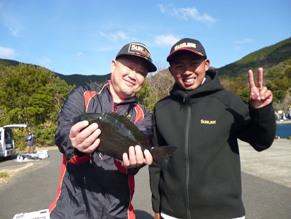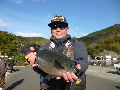 低水温期によりグレの活性も良くないことに加えて、強風で釣りにくい状況のなか、さすがサンライン製品愛好者ですね。