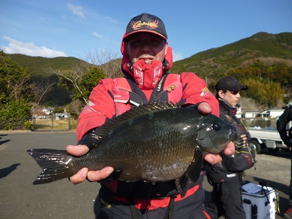 一日を通してグレの活性が低い中、数少ないチャンスを確実に捉え、良型グレを確保したクロの部優勝の羽田野さん