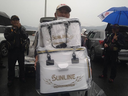 各部の2位以下の方や残念ながら釣果の無かった方もサンライン製品の賞品が全員に手渡されました。
