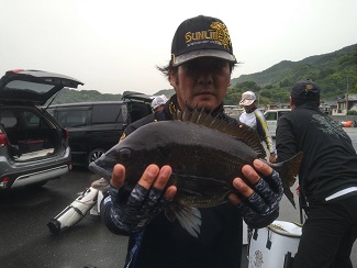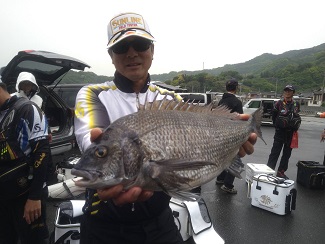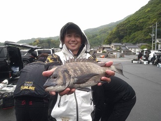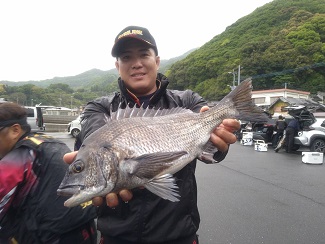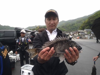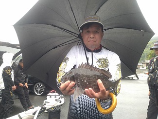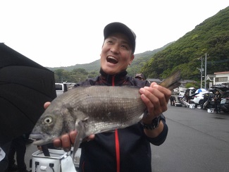 グレが厳しい状況の中、1,040gのクチブトを釣り上げクロの部1位の藤本さん。。