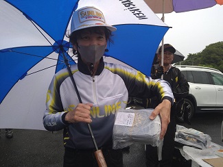 IGマリンさまからの協賛品をゲットした佐藤さん。